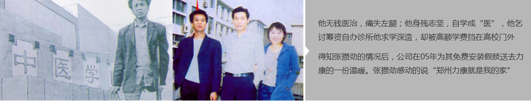 鄭州市力康假肢矯形器有限公司(簡稱力康),是一家專業(yè)從事假肢矯形器的設計、研發(fā)、制作及裝 配的專業(yè)機構。成立于1992年是河南省唯一一家福利企業(yè)。力康下設業(yè)務部、技術部、住院部、康復 部、售后服務部,并配有現(xiàn)代化的裝配車間和功能齊全的訓練大廳,為殘疾朋友康復訓練提供了可靠 保障。總經理穿戴假肢多年,有著豐富的臨床經驗和親身體會;多年來,力康已為全國幾十萬名殘疾 朋友安裝上舒適、美觀、耐用的假肢和矯形器具,使他們更大限度地恢復了正常的工作和生活。“產 品即人品”的質量理念、先進的技術、實惠的價格、完善的售后服務是力康取勝的法寶……